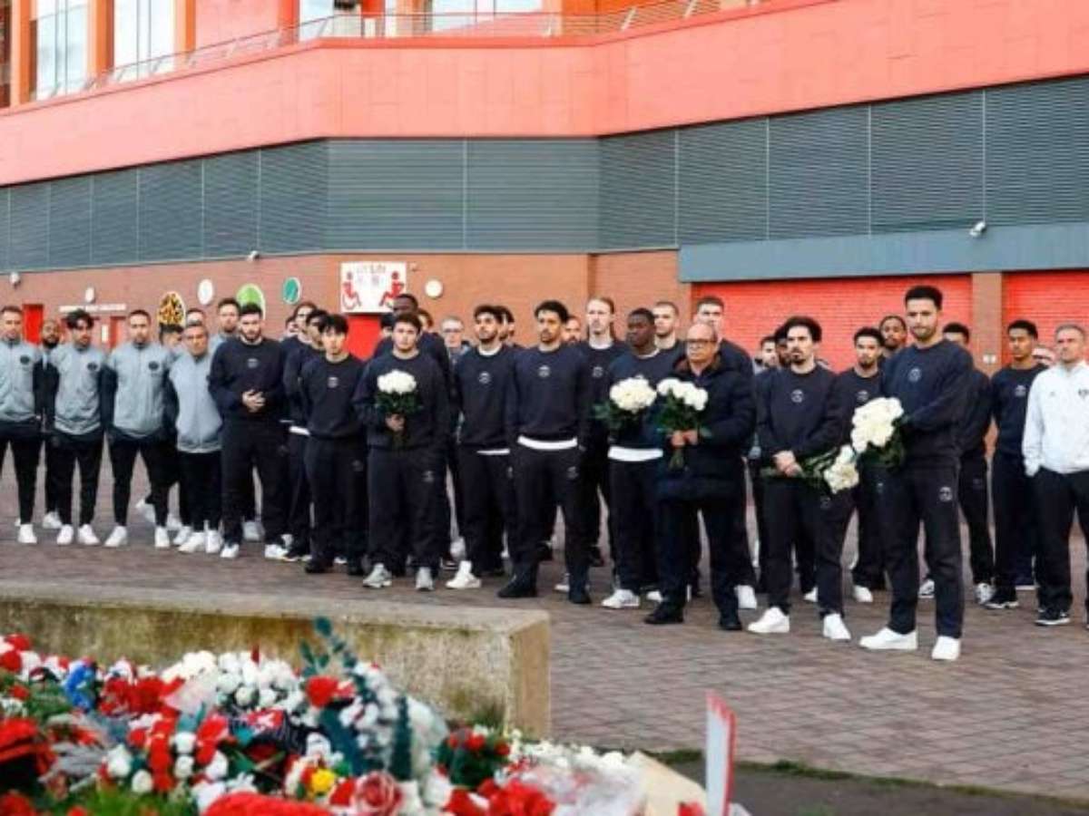 Le président Nasser Al-Khelaïfi, accompagné de l'ensemble du groupe sportif, a rendu hommage aux victimes de la tragédie d'Hillsborough, avant de se recueillir sur le mémorial dédié à Diogo Jota et à son frère André Silva, à Anfield, en amont du match face à Liverpool ce mardi.… pic.twitter.com/Jyx9UiCFyn