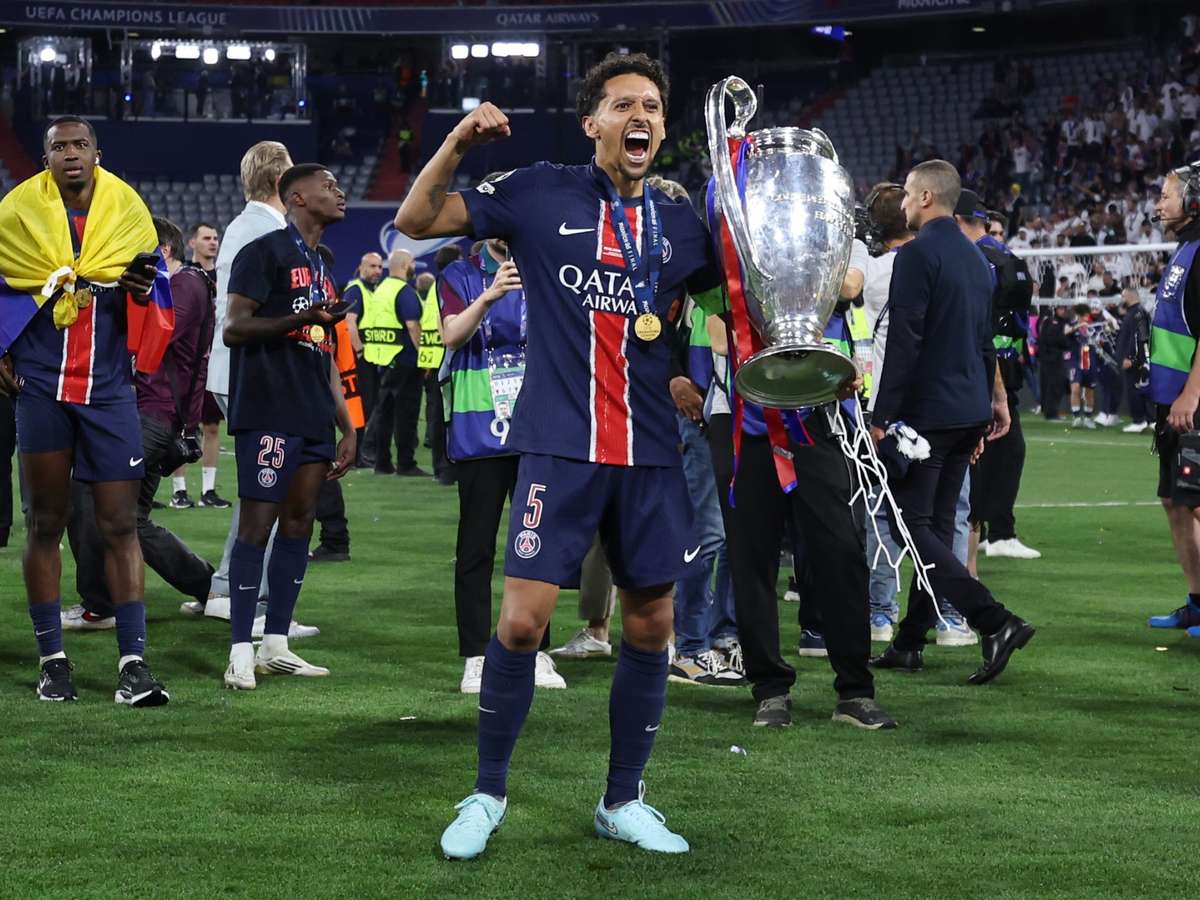 Marquinhos ergue a taça da Champions League como capitão do PSG: "vamos celebrar"