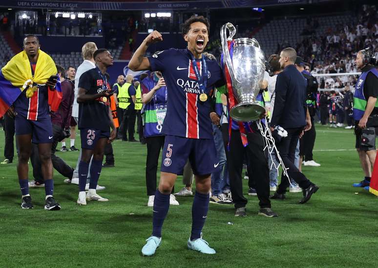 O PSG venceu a final da UEFA Champions League e o brasileiro Marquinhos teve a honra de levantar a taça do triunfo contra a Inter de Milão. Capitão da equipe, o zagueiro comemorou o resultado.