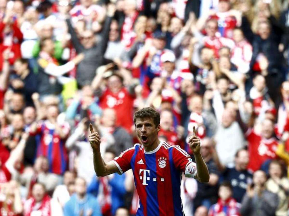 Thomas Mueller, de Bayern de Munique, comemora gol em partida em Munique. 11/04/2015