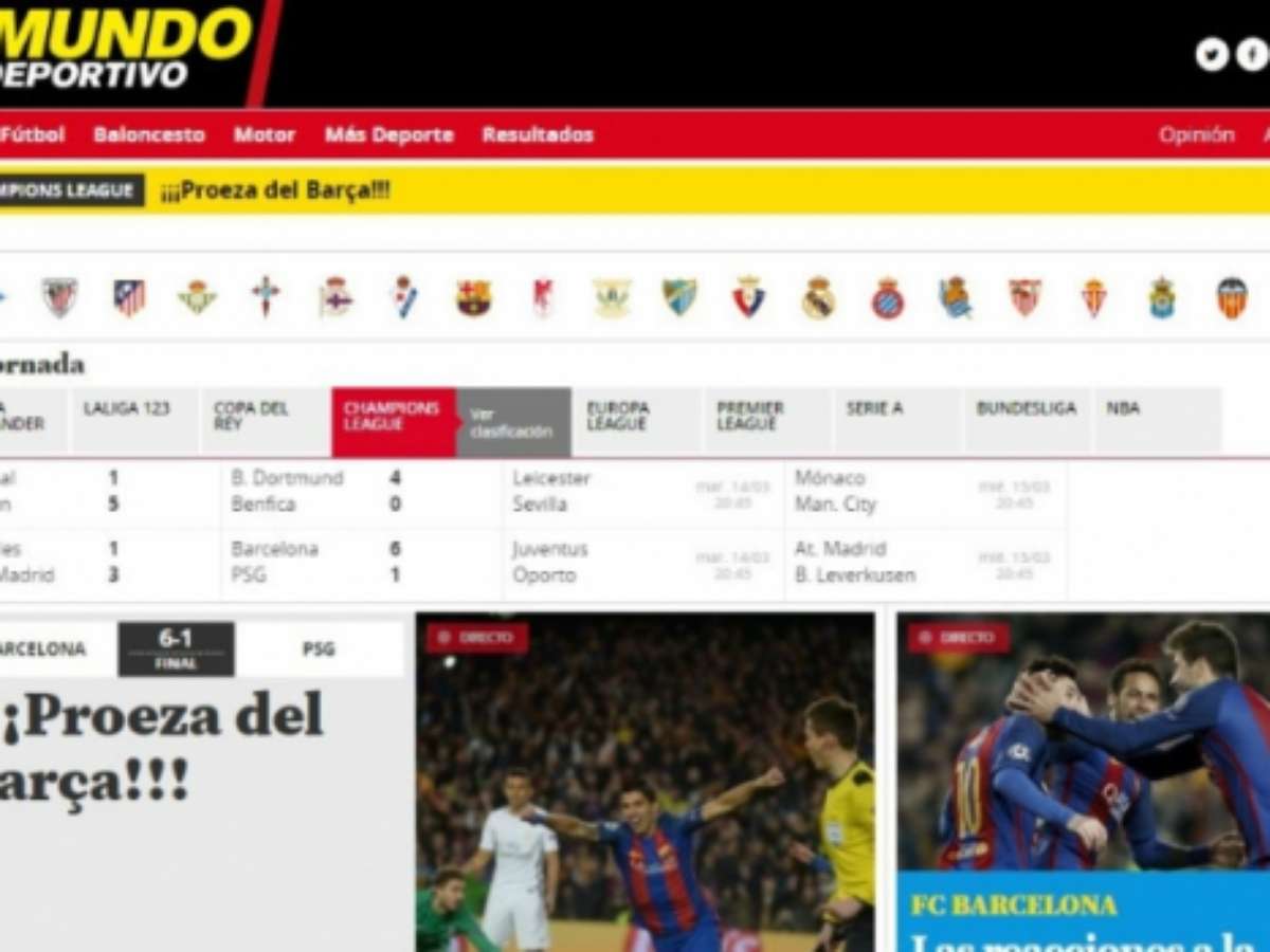 O Barcelona derrotou o Paris Saint-Germain nesta quarta-feira por 6 a 1, em casa, e eliminou o clube francês na Liga dos Campeões. Como tinha sido derrotado por 4 a 0 na ida, na França, a vitória ganhou grande espaço nos principais veículos de informações do mundo. Confira alguns destaques.