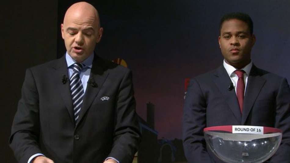Liga Europa Veja quais serão os confrontos do "mata-mata" da Liga Europa Exibir comentários Compartilhar Kluivert participa do sorteio que define os 16 confrontos da próxima fase da competição Terra Publicidade