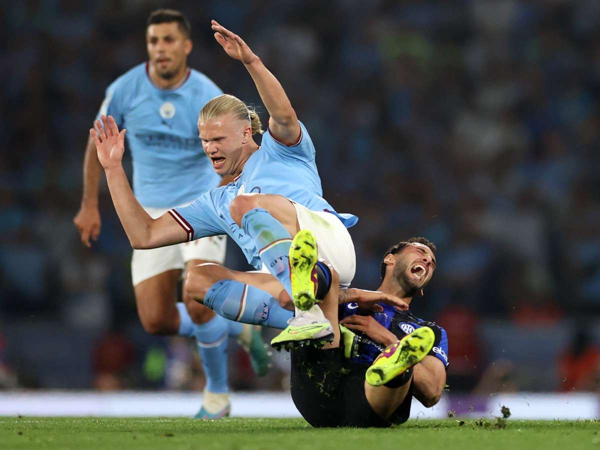 Cartões amarelos: Haaland (MCI); Barella, Brozovic, Lukaku e Onana (INT)