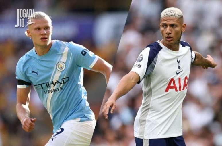 Manchester City e Tottenham se enfrentam na manhã deste sábado (23/8) pela segunda rodada da Premier League inglesa. O clássico no Etihad Stadium, casa dos Citizens, coloca lado a lado dois dos goleadores da primeira rodada da competição. Haaland marcou dois no 4 a 0 do City sobre o Wolverhampton. Já Richarlison fez dois do Tottenham no 3 a 0 de seu time sobre o Burnley.