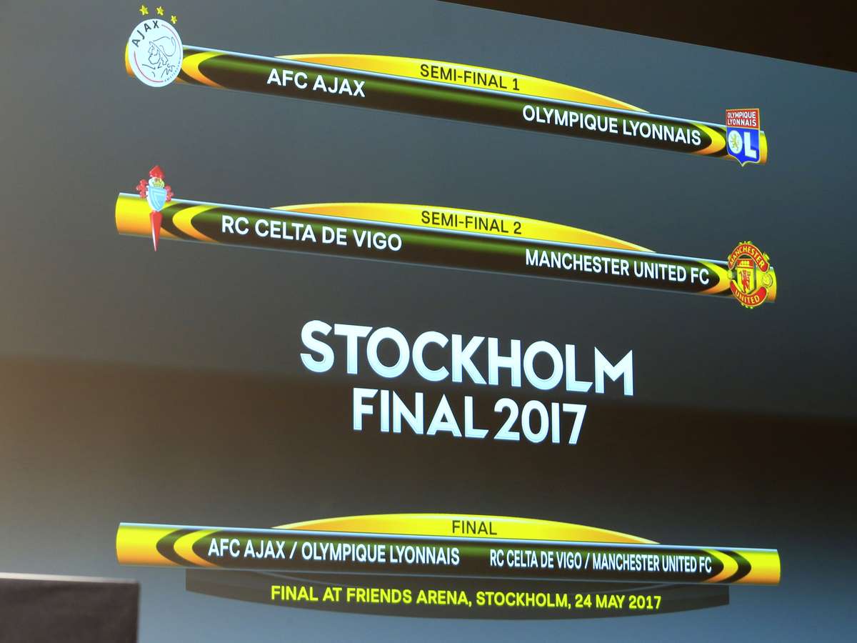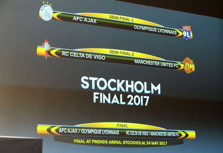 A Liga Europa promete ainda mais emoção após os movimentados jogos das quartas de final. Na sede da Uefa, em Nyon, na Suíça, nesta sexta-feira, foi realizado o sorteio da semifinal da competição - logo em seguida ao da Liga dos Campeões: o Ajax enfrenta o Lyon e o Celta duela com o Manchester United.