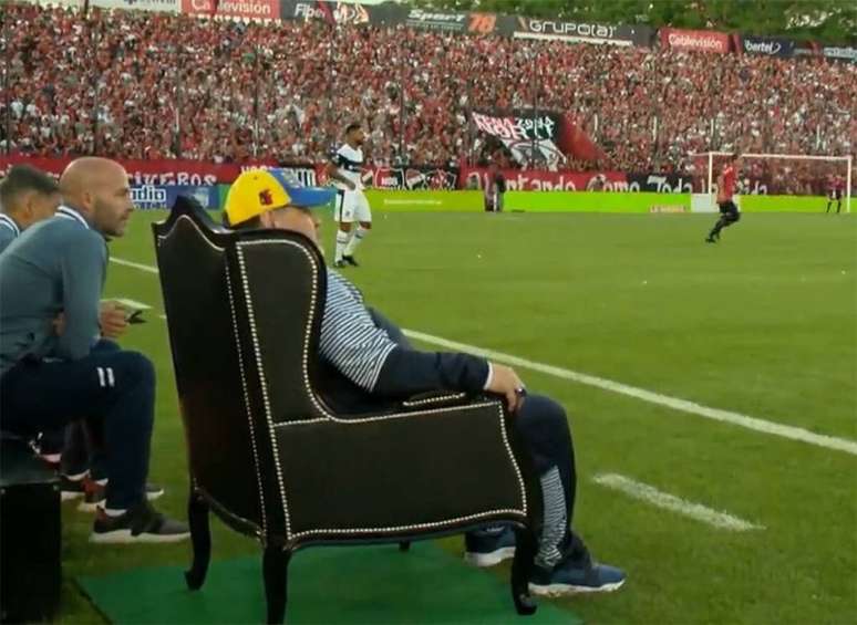 Diego Maradona é intensamente idolatrado no futebol argentino. E, mesmo não tendo registrado uma passagem vitoriosa no Newell's Old Boys, o sentimento não é diferente no clube de Rosário. Nesta terça-feira, o atual técnico do Gimnasia reencontrou a equipe rubro-negra em partida válida pelo Campeonato Argentino e foi recebido com festa, com direito a trono na beira do gramado.