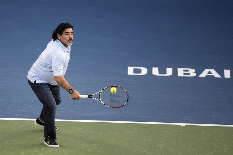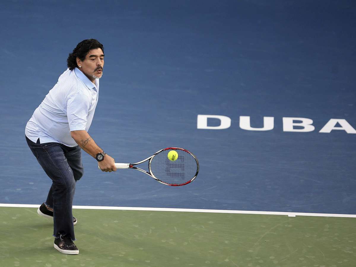 O ATP 500 de Dubai contou com uma presença inusitada em quadra nesta quarta-feira. O ex-jogador argentino Diego Armando Maradona mostrou sua habilidade com a bolinha amarela em um bate bola com o compatriota Juan Martin del Potro. Maradona é embaixador do futebol nos Emirados Árabes.
