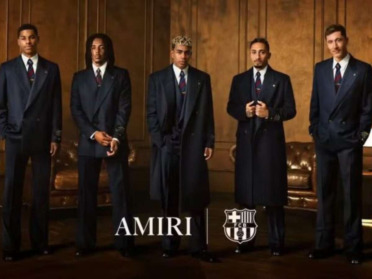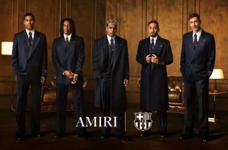 Clube divulga Rashford, Koundé, Lamine Yamal, Raphinha e Lewandowski vestidos com ternos completos para celebrar parceria com AMIRI