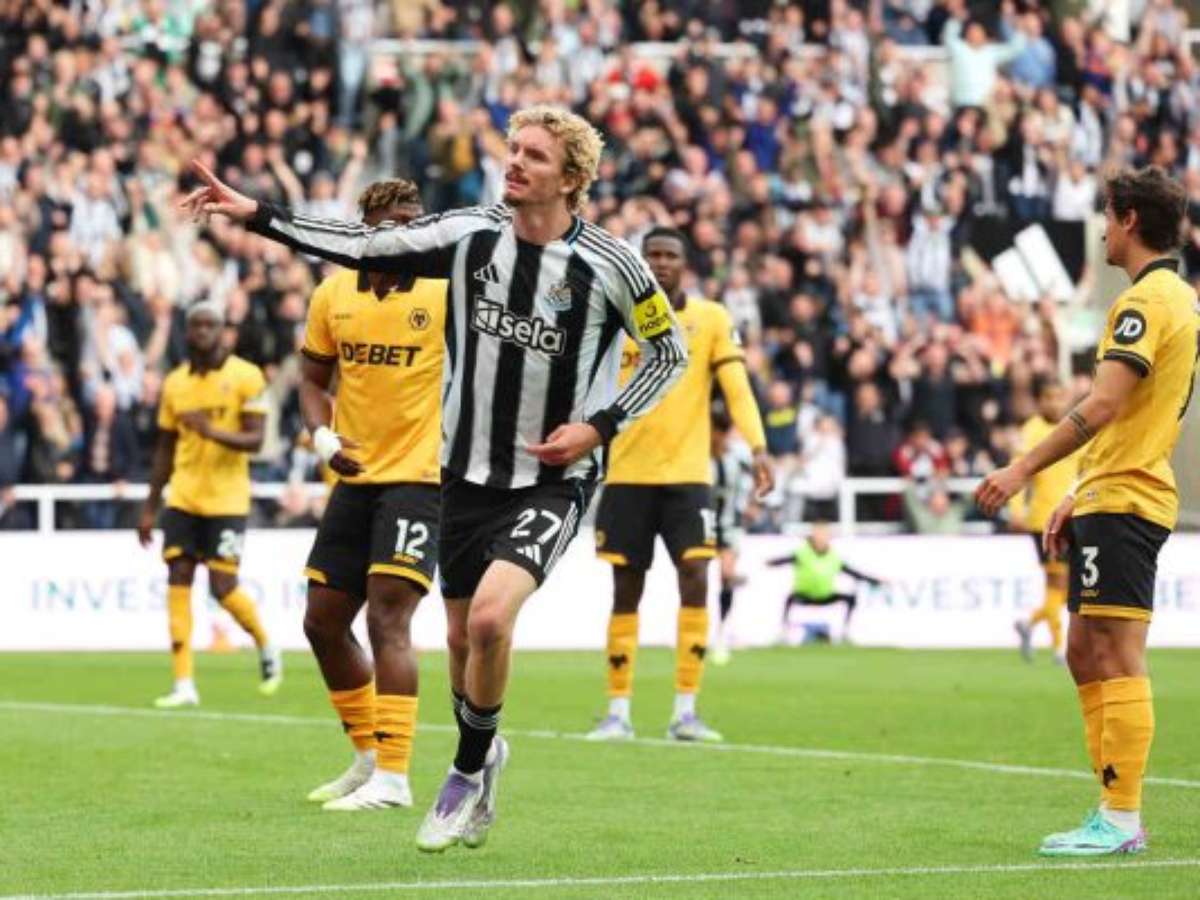 Só que o Newcastle também apareceu com perigo. Johnstone evitou um gol de Joelinton, e Murphy teve pelo menos duas grandes chances: um chute de fora da área e uma finalização à queima-roupa, para Johnstone fazer a melhor defesa do primeiro tempo. Com tanta chance para ambos os lados, o Newcastle foi quem levou a melhor aos 29. Um cruzamento de Murphy encontrou o alemão Woltemade, que cabeceou para o gol. O Wolverhampton permaneceu em cima, sempre com perigo, mas foi o Newcastle quem lamentou as duas melhores oportunidades perdidas: com Murphy, mais uma vez, e com Tonali chutando uma bola na trave.