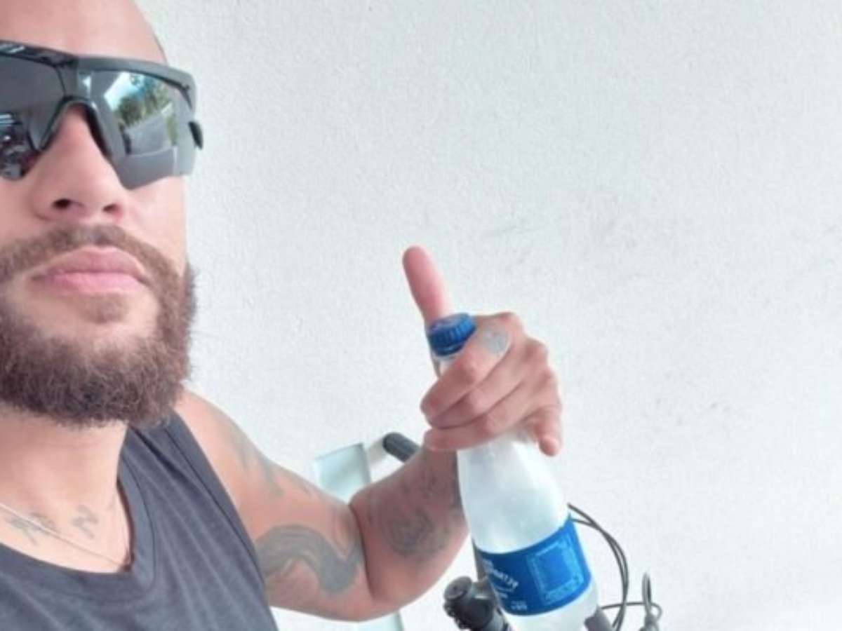 O jogador, que está temporariamente no Brasil enquanto não pode defender o Al-Hilal, sua equipe na Arábia Saudita, exibiu sua rotina de exercícios em uma bicicleta ergométrica. Além disso, postou uma refeição saudável. Em outra imagem, com a legenda "Segundo round do dia", apareceu ao lado de uma bicicleta de Mountain Bike.