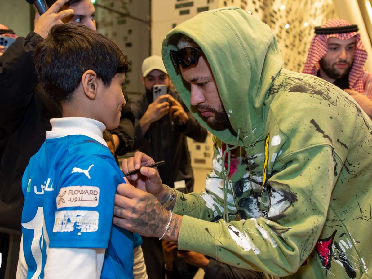 Depois de quase quatro meses, Neymar está de volta à Arábia Saudita. O atacante do Al-Hilal chegou nesta segunda-feira (12) em Riade, onde vai dar continuidade ao da lesão no joelho. Ele foi recebido com flores e carinho de alguns fãs que o aguardavam em uma área do aeroporto.