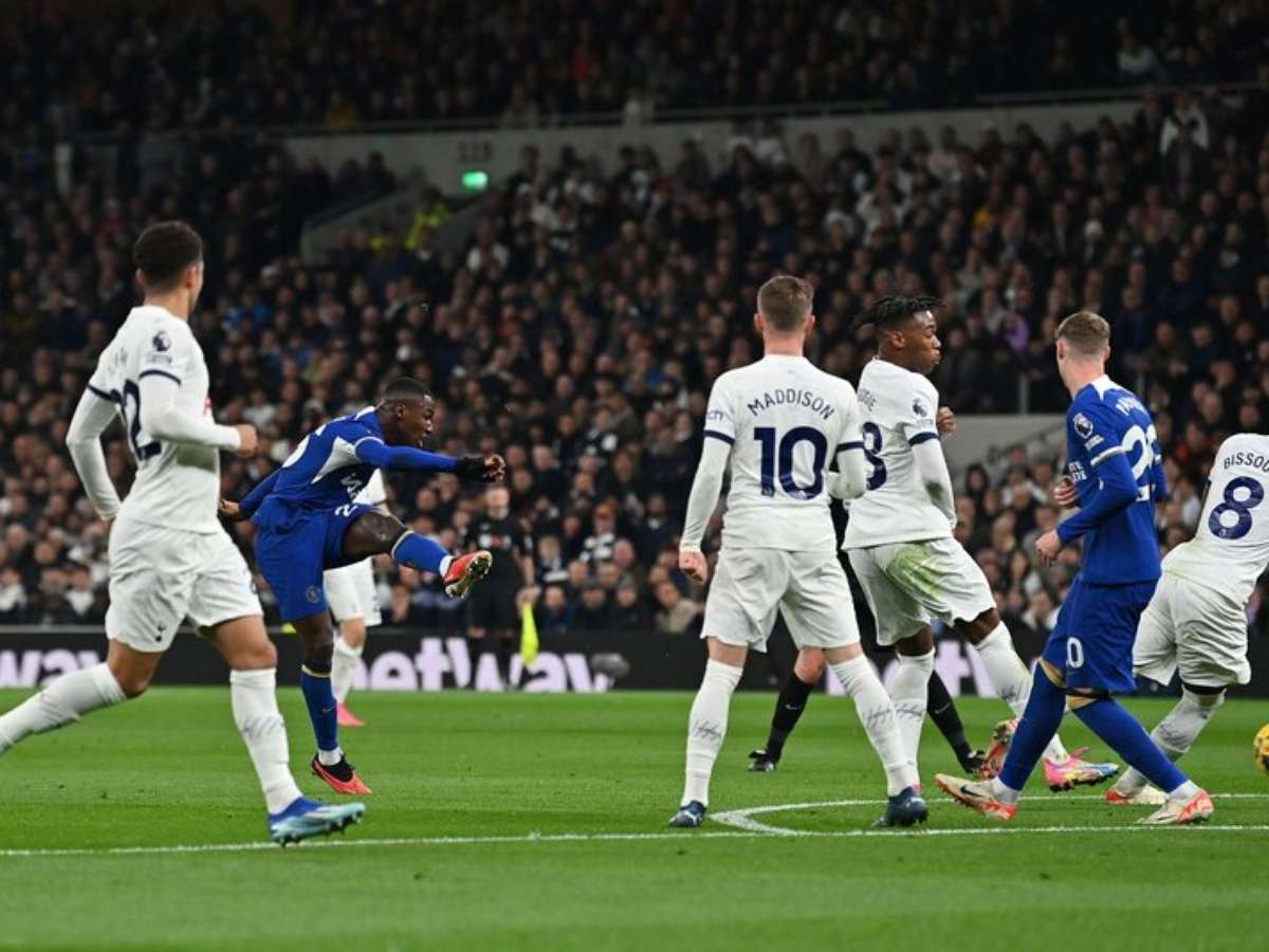 A pressão persistia, até que a defesa do Tottenham falhou e concedeu espaço para os visitantes, enfim, superarem Vicario. Em rápida jogada de contra-ataque, Sterling teve liberdade e só rolou para Nicolas Jackson virar a partida para o Chelsea.