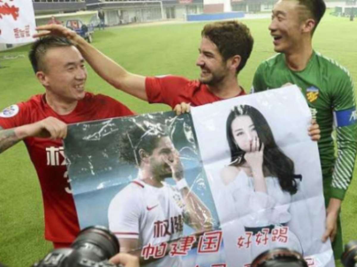 O jogador brasileiro do Tianjin Quanjian recebeu apoio de fãs após a partida desta quarta-feira para tentar conhecer a atriz Dilireba, estrela de novelas e filmes chineses