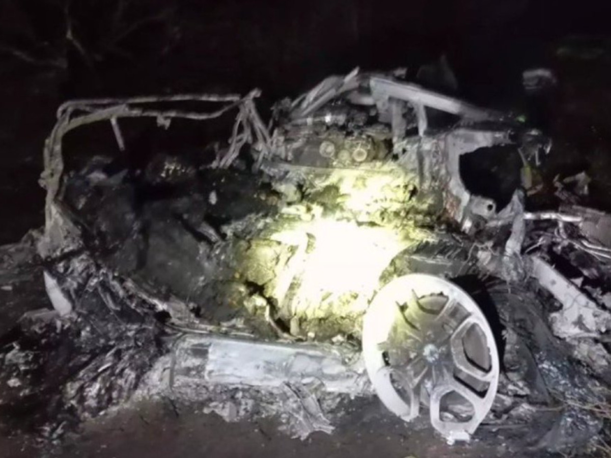 "Um veículo saiu da pista pela calçada pela esquerda. A investigação aponta para um acidente de trânsito devido ao estouro de um pneu durante uma ultrapassagem. Como consequência do acidente, o carro se incendiou, e ambos os ocupantes morreram", diz o Guarda Civil.