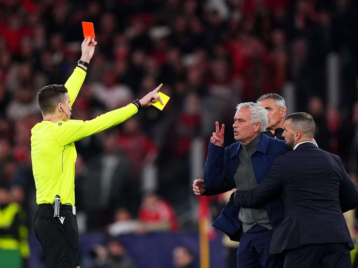 Mourinho recebeu o segundo cartão amarelo ao sair da área técnica para discutir com o árbitro François Letexier. Sua reclamação foi por conta do árbitro francês não ter aplicado o segundo cartão amarelo para Vini Jr, o que fez ele ser expulso.