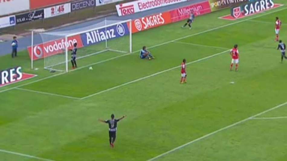 Campeonato Português Candeias faz e Nacional vira sobre o Braga Exibir comentários Compartilhar No cruzamento de Candeias, a bola desvia na zaga e engana o goleiro Quim Redação Terra Publicidade