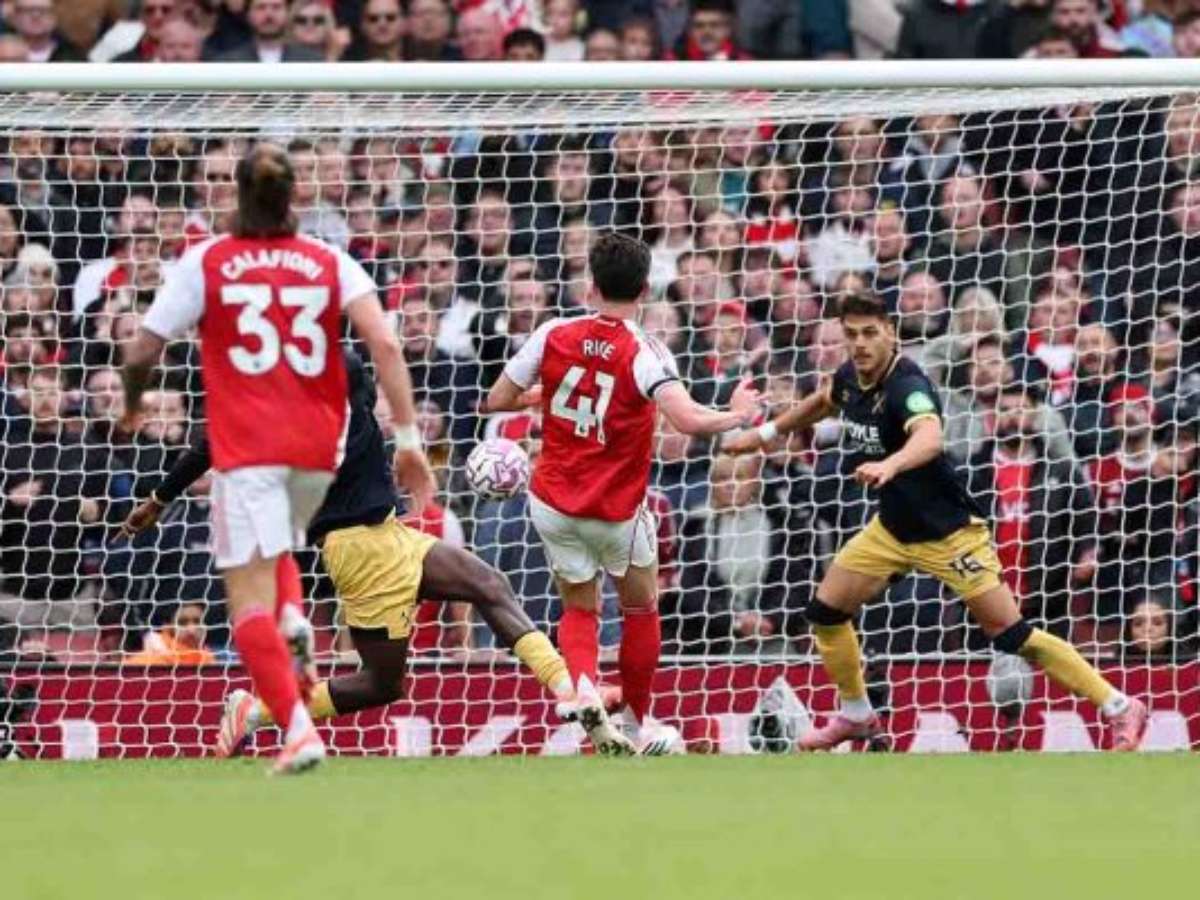 Declan Rice e Saka garantem vitória em Londres. Odegaard preocupa por lesão, e time comandado por Mikel Arteta assume a liderança provisória