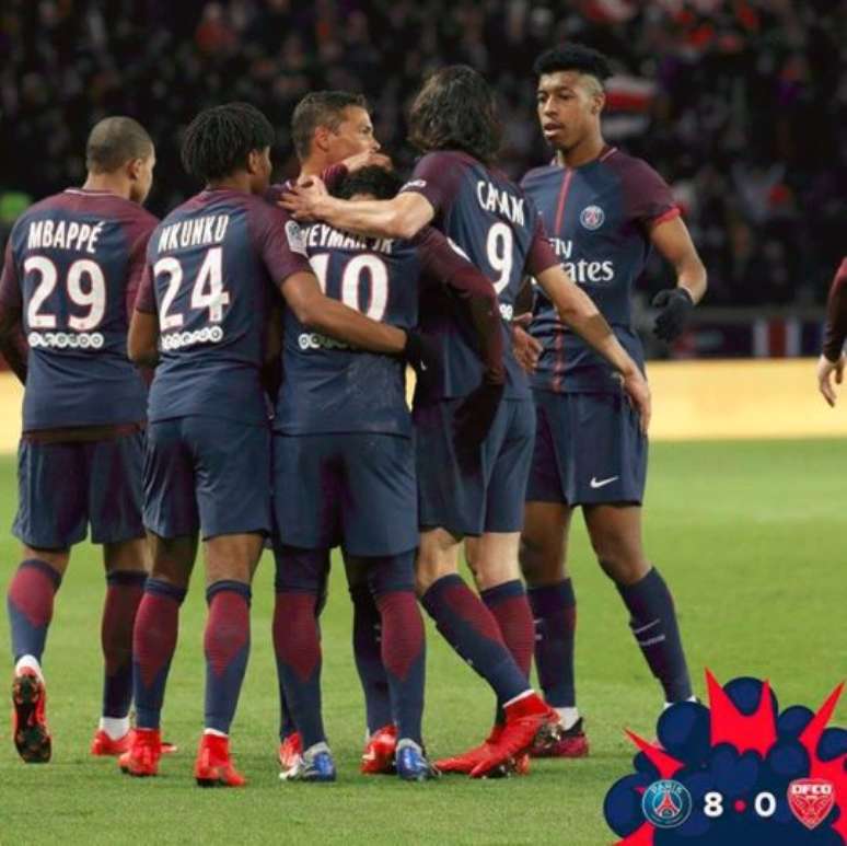 O Paris Saint-Germain aplicou mais uma goleada pelo Campeonato Francês na noite desta quarta-feira. No Estádio Parque dos Príncipes, com quatro gols marcados pelo brasileiro Neymar e recorde do uruguaio Edinson Cavani, o líder do torneio nacional venceu um inofensivo Dijon por 8 a 0.