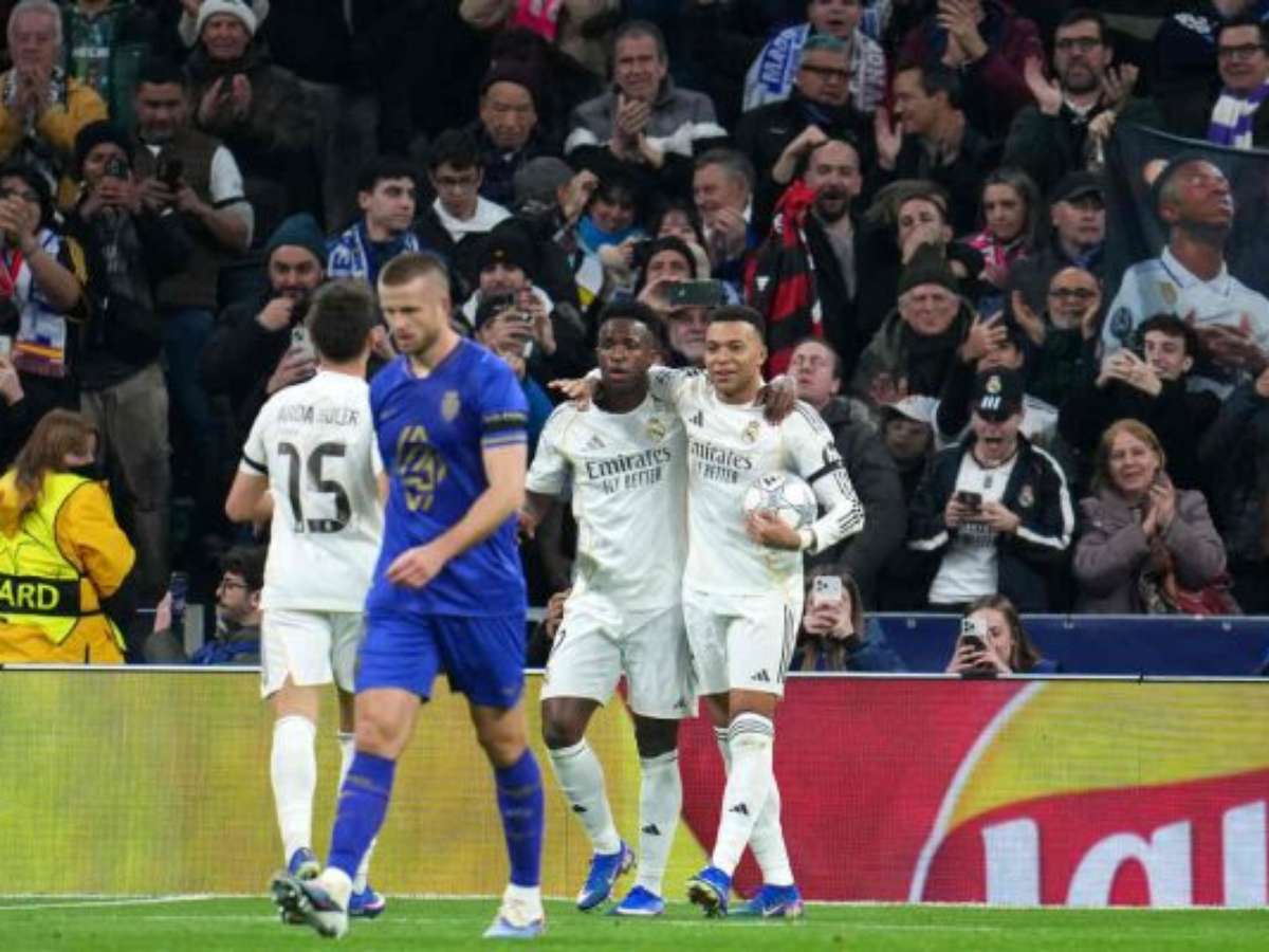 O Real Madrid foi superior ao adversário e construiu com justiça uma vantagem de dois gols antes do intervalo. As duas bolas na rede nasceram de jogadas coletivas de alto nível. No primeiro, Valverde deu assistência para Mbappé abrir o placar em finalização de primeira na entrada da área. Já na segunda, Vini Jr começou a jogada, Camavinga tirou a defesa do Monaco com um passe de letra decisivo, que terminou com assistência de Vini Jr para Mbappé anotar o segundo no jogo.