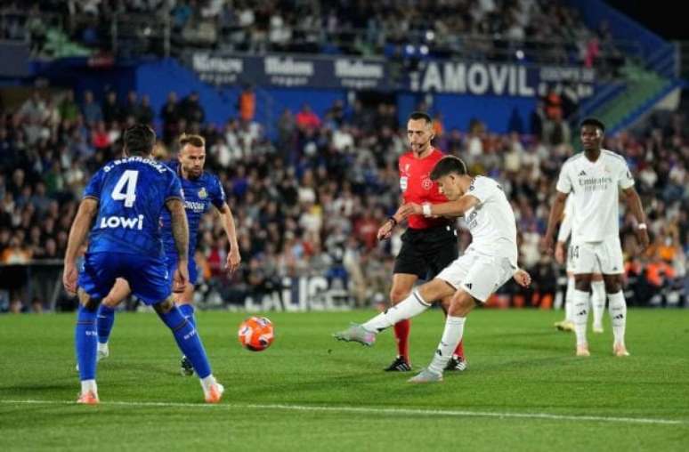 O Real Madrid está vivo na briga pelo título do Campeonato Espanhol. Nesta quarta-feira (23), o clube merengue venceu o Getafe por 1 a 0, fora de casa, e segue na cola do líder Barcelona. Arda Güler marcou o gol da vitória no estádio Coliseum Alfonso Pérez, em confronto válido pela 33ª rodada de LaLiga. O técnico Carlo Ancelotti fez alterações no time e deu oportunidades para alguns jogadores, como Endrick e o próprio Arda Güler, de olho na decisão da Copa do Rei da Espanha no próximo sábado (26), contra o Barça.