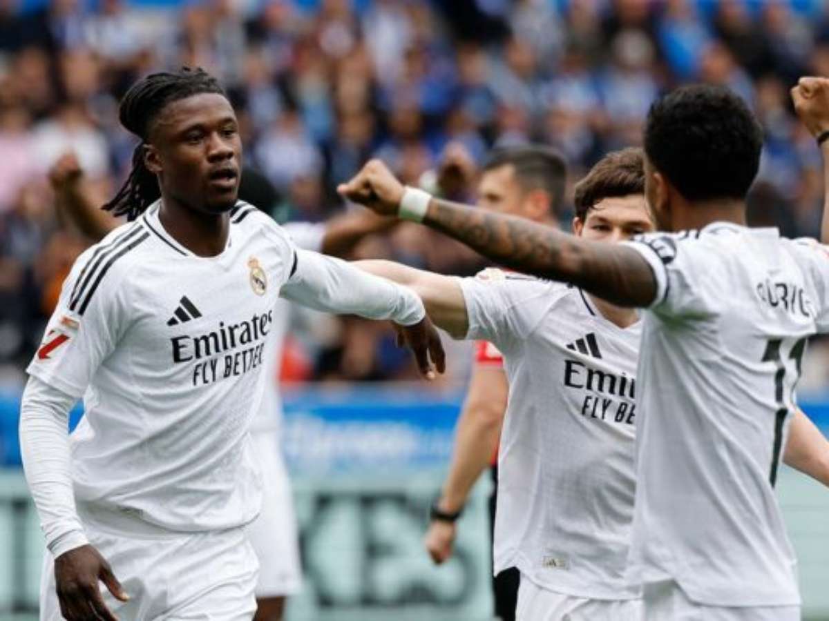O Real Madrid venceu o Alavés por 1 a 0 neste domingo (13), fora de casa, pela 31ª rodada do Campeonato Espanhol, e segue firme na briga com o Barcelona pelo título de LaLiga. O gol da vitória foi marcado pelo volante Camavinga, ainda no primeiro tempo, momentos antes da expulsão de Mbappé por uma entrada violenta no adversário.