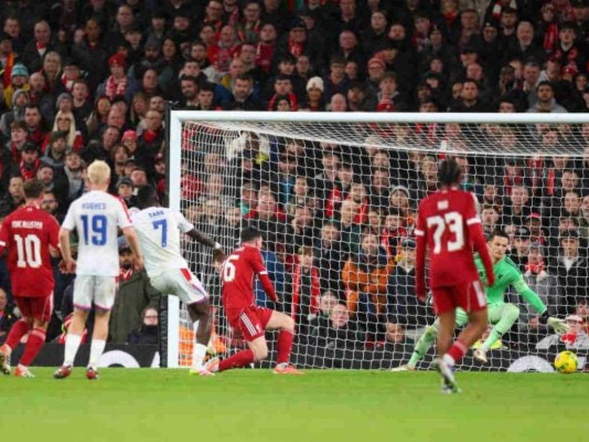 O Liverpool foi eliminado na Copa da Liga Inglesa em pleno Anfield. Nesta quarta-feira (29), os Reds perderam para o Crystal Palace por 3 a 0, com dois gols de Sarr e um de Yeremi Pino. Agora, os londrinos avançam às quartas de final da competição e aguardam o sorteio para saber o adversário na próxima fase.