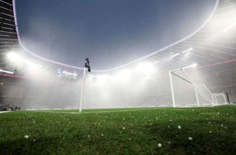Uma forte tempestade com direito a chuva de granizo atingiu a Allianz Arena, em Munique, pouco antes da semifinal da Liga das Nações entre Alemanha e Portugal nesta quarta-feira (4).