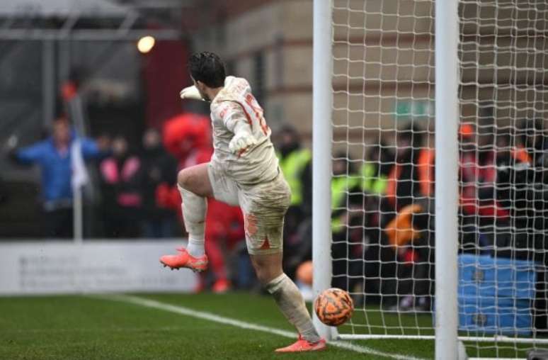 Na Copa da Inglaterra, Donley manda do meio da rua e faz gol histórico, mas a bola bate em Ortega e o tento é contra do goleiro. Incrível!