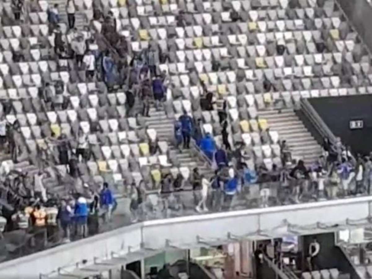 Confusão ocorreu nos acréscimos da partida na Arena MRV; a Polícia Militar precisou intervir para conter os torcedores argentinos