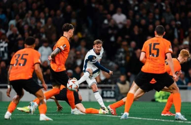Mesmo fora de casa, o Frankfurt conseguiu se impor e surpreendeu em Londres. Logo aos cinco minutos, os visitantes aproveitaram um vacilo de Maddison na saída de bola e Ekitiké finalizou da entrada da área para abrir o placar. No entanto, aos 25 minutos, o camisa 10 se redimiu com a torcida do Tottenham. Após cruzamento de Son, Solanke tocou de leve e a bola sobrou para Maddison na esquerda. Ele cruzou rasteiro, e Porro finalizou com uma bela letra para empatar o jogo.