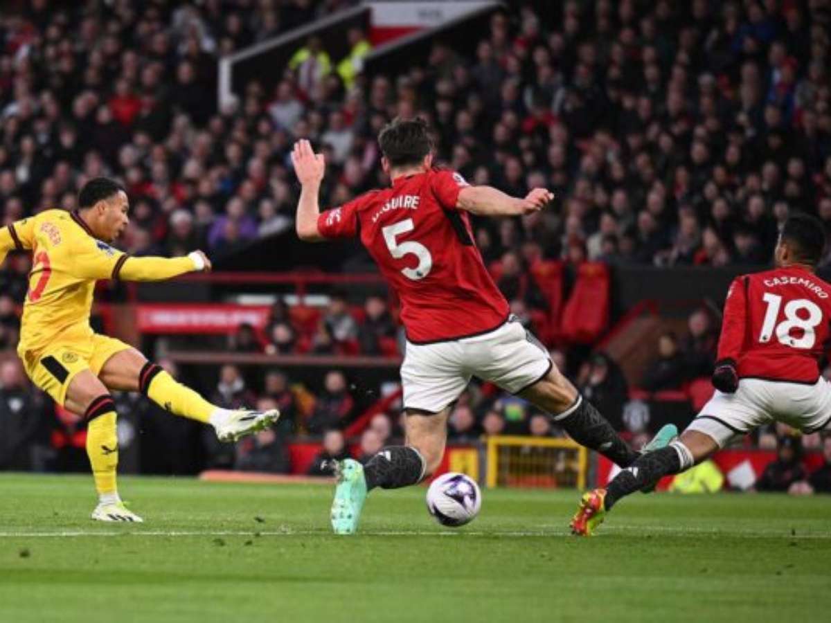 O Manchester United conseguiu produzir mais que o Sheffield na primeira etapa, mas não estava com a pontaria em dia. Contudo, uma falha do Onana complicou a vida dos donos da casa. O goleiro errou na saída de bola e tocou a bola nos pés de Bogle, que finalizou para abrir o placar aos 34 minutos. Por outro lado, o United precisou correr atrás do prejuízo e pressionou em busca do empate. Assim, Maguire aproveitou cruzamento de Garnacho e desviou de cabeça para assegurar o empate por 1 a 1 antes do intervalo.
