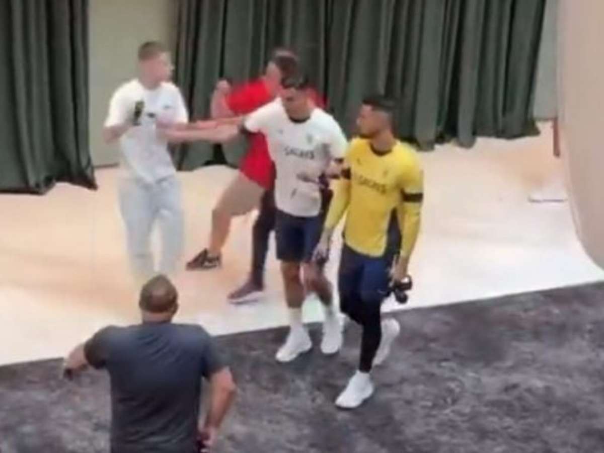 Um vídeo com Cristiano Ronaldo circula nas redes sociais e está provocando muita polêmica. O capitão da seleção portuguesa foi flagrado empurrando um torcedor que tentou se aproximar.
