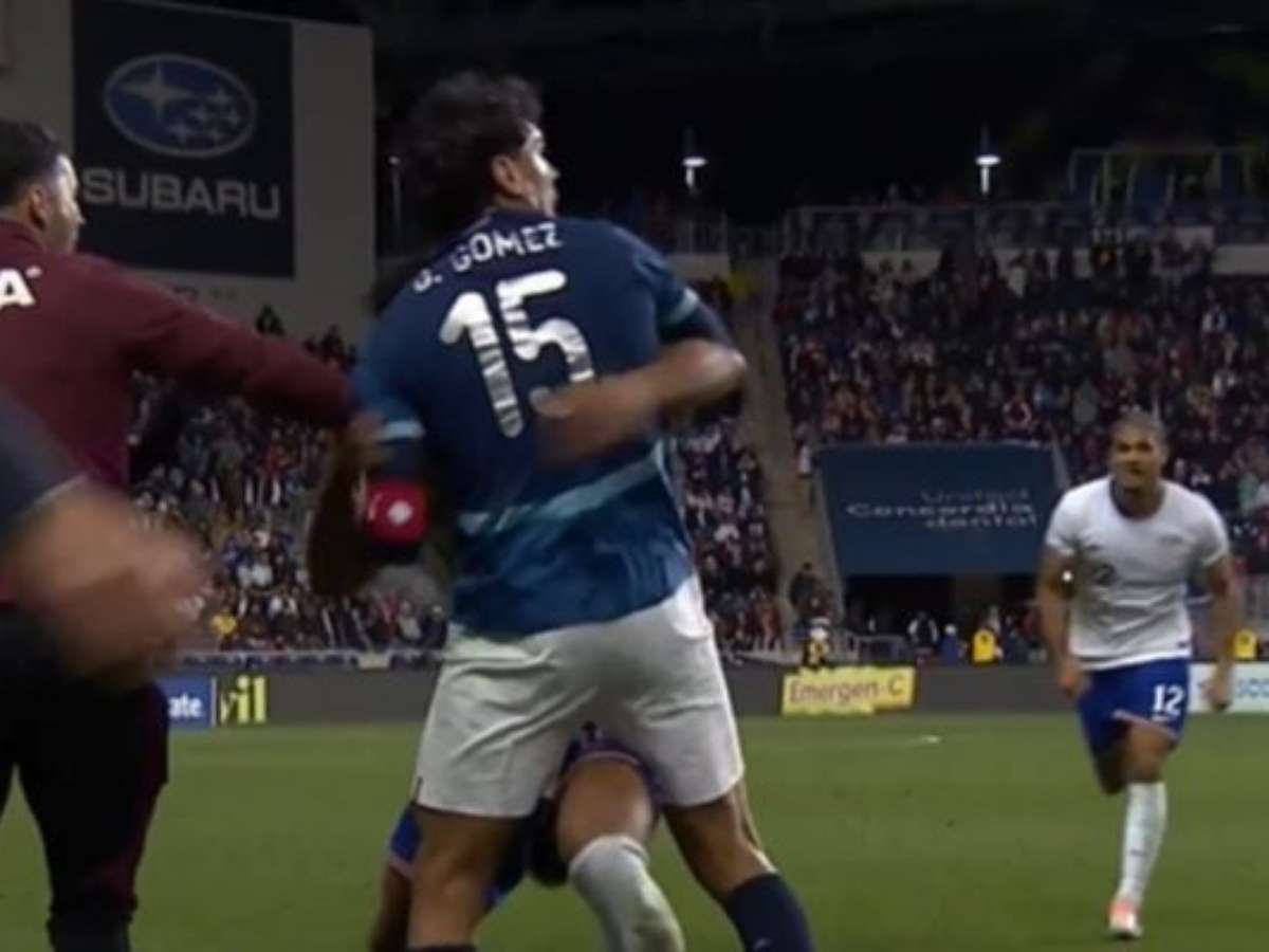 O tumulto teve início quando Gómez tentou cobrar um lateral de forma rápida, mas acabou impedido pelo lateral Alex Freeman. Quase imediatamente, a discussão evoluiu para empurrões e provocações entre os dois. O clima esquentou de vez quando jogadores das duas seleções começaram a se aproximar para tirar satisfações.