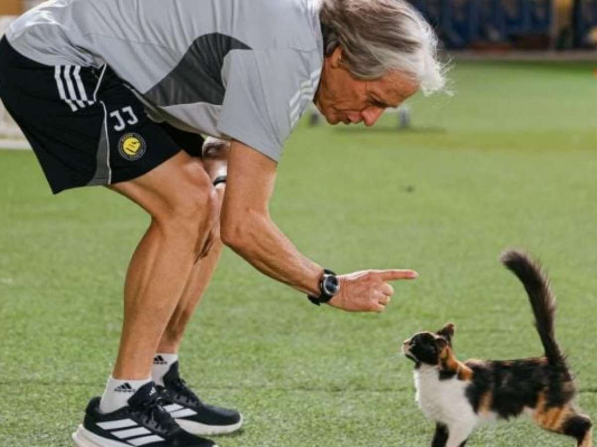 Durante o treino do Al Nassr desta sexta (17), uma visitante inesperado roubou a cena: uma gatinha invadiu o gramado da equipe saudita. Jorge Jesus, treinador português, reagiu de forma divertida ao se deparar com o bichinho.