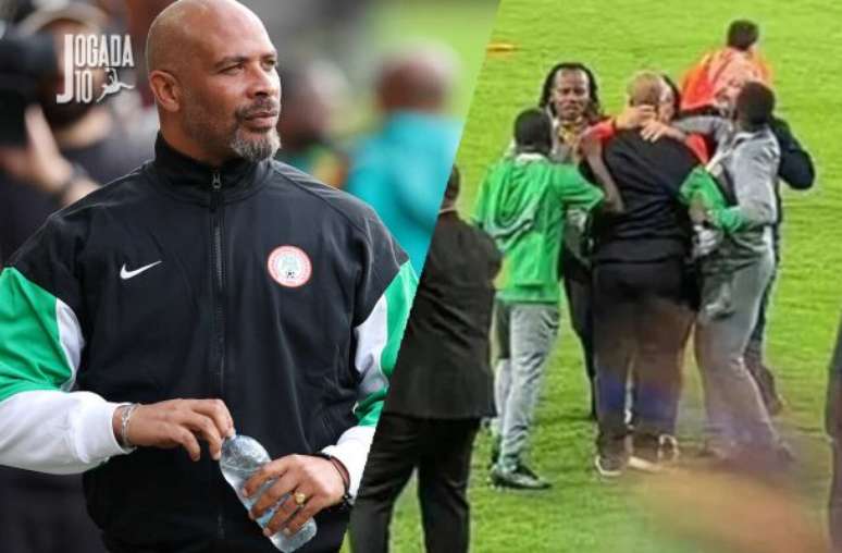 A cena, transmitida pela televisão, mostrou o treinador nigeriano correndo em direção ao banco do Congo para tirar satisfações, em um episódio que chamou atenção tanto pela tensão quanto pela inusitada acusação.