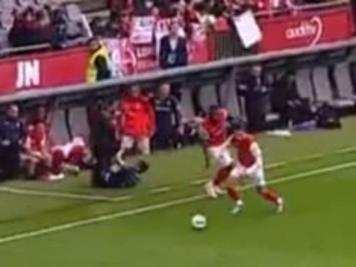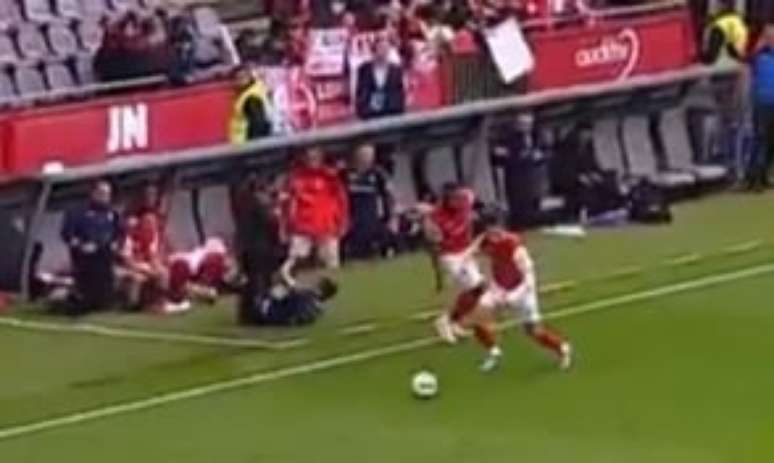 Vídeo: técnico é 'atropelado' e sofre lesão no ombro durante jogo