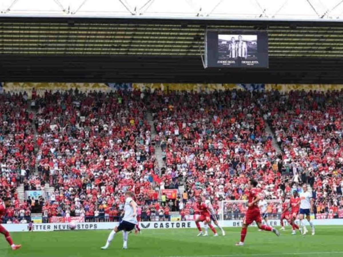 O Liverpool entrou em campo neste domingo (13) para disputar o primeiro jogo desde a trágica morte de Diogo Jota e André Silva, vítimas de um acidente de carro na madrugada do dia 3 de julho.