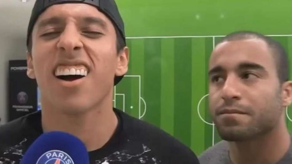 Futebol Internacional Marquinhos e Lucas "esbanjam" francês em vestiário do PSG Exibir comentários Compartilhar Zagueiro e atacante brasileiros do Paris Saint-Germain mostraram bom humor para comandar vídeo no canal da equipe francesa - imagens: PSG TV Terra Publicidade