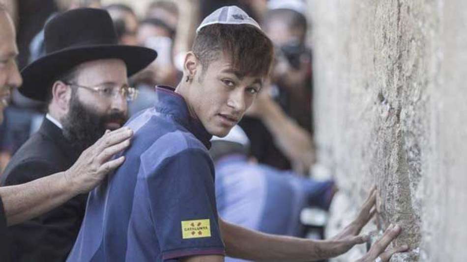 Futebol Internacional Neymar e Messi visitam o Muro das Lamentações, em Israel Exibir comentários Compartilhar Com quipá - chapéu que simboliza respeito a Deus na religião judaica- , Neymar visitou neste domingo o Muro com a delegação do Barcelona Redação Terra Publicidade