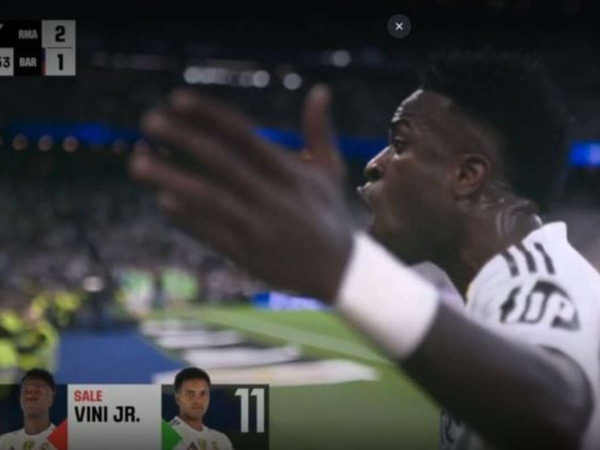 Vini até fazia bom jogo e fez a jogada do segundo gol, de Bellingham. Mas, ao sair, Vini Jr. mal olhou para Rodrygo, embora tenha estendido a mão ao companheiro de Real Madrid e da Seleção Brasileira. Mesmo assim, deixou o campo esbravejando, xingando muito, com os braços abertos e passando rente ao treinador, que sequer deu atenção às reclamações.