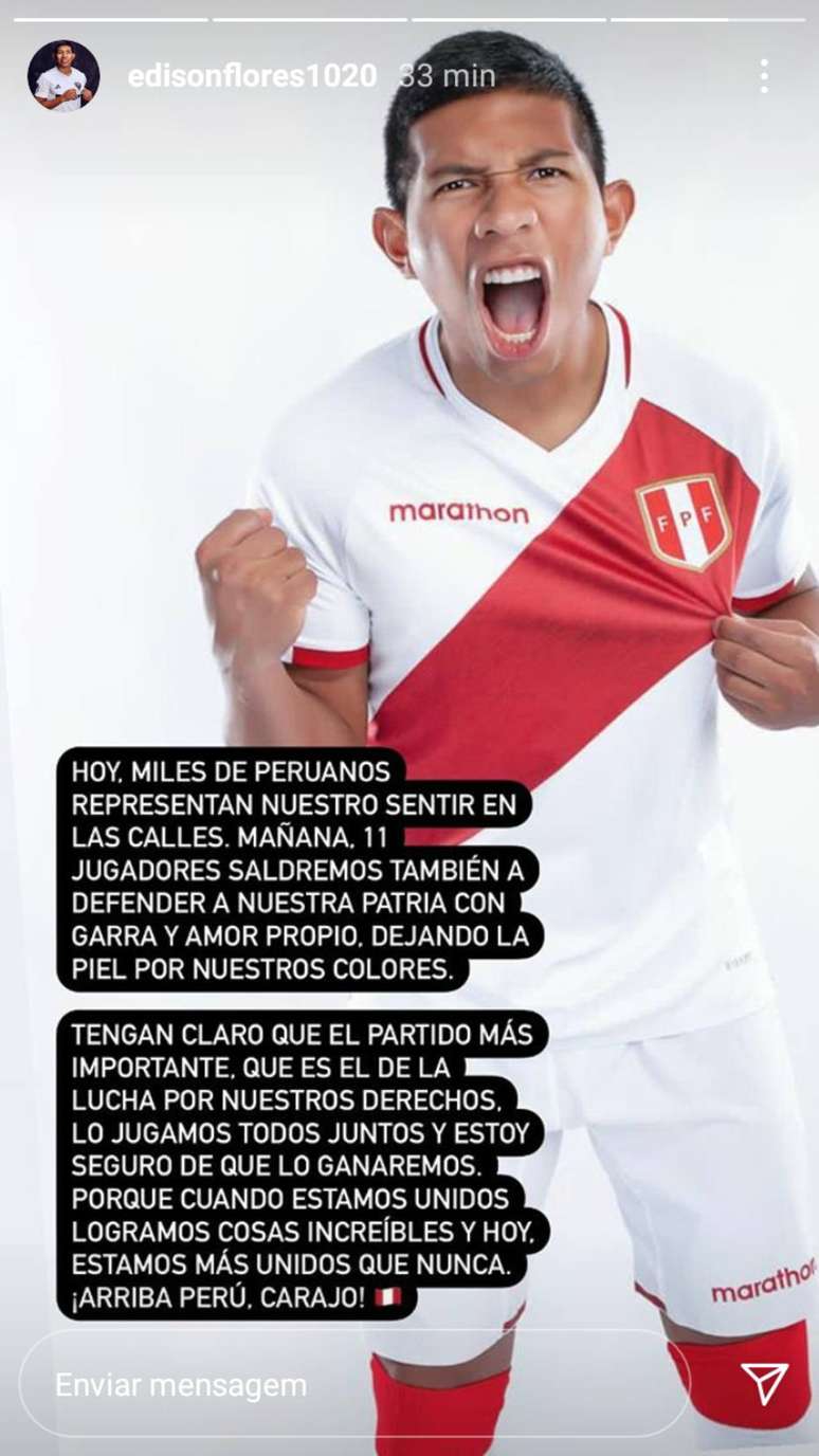 O atacante Paolo Guerrero, que atua no Internacional, mas está afastado dos gramados devido a uma lesão, também se pronunciou: "Meus melhores votos ao meu país e a todos vocês que hoje enfrentam a incerteza da covid-19 e a instabilidade política. Força, meu povo", pediu o principal jogador da seleção peruana.