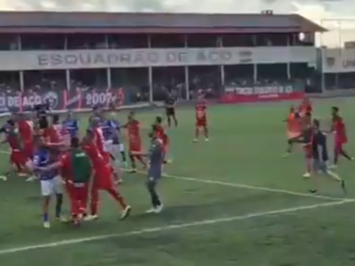Os jogadores começaram a brigar e não só começou uma briga feia como também abriram o portão da torcida.