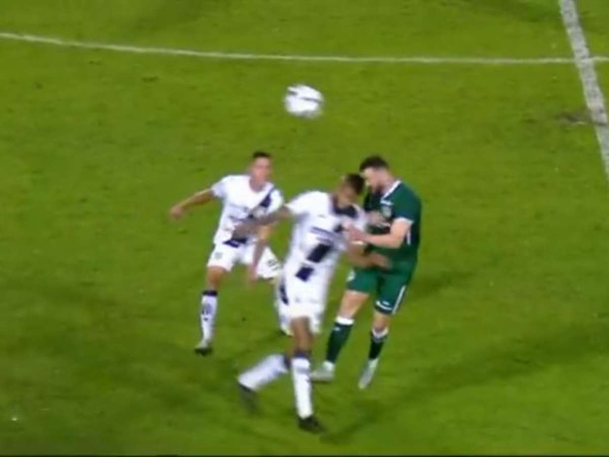 Choque de cabeça entre jogadores de Ponte Preta e Goiás - Foto: Reprodução/ Premiere FC