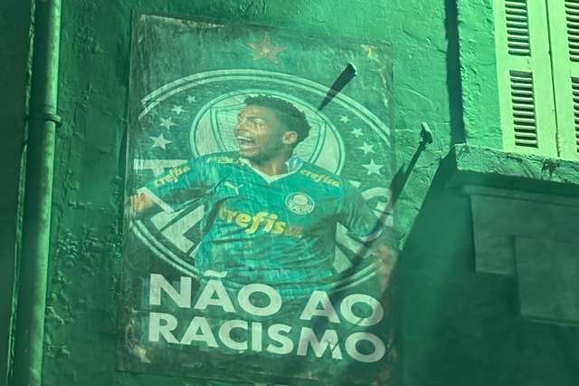 Do lado de fora do Allianz Parque, as mensagens são contra o racismo. Torcedores do Palmeiras espalharam cartazes de protesto. No último mês, o jogo entre as equipes pela Libertadores sub-20 ficou marcado por ataques contra Luighi. [Por Raul Godoy]