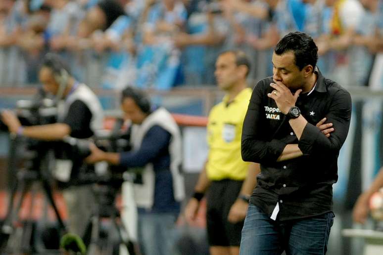 Aos 12 minutos, em cobrança de falta para o Botafogo, a bola foi alçada na área gremista e o goleiro Marcelo Grohe se atrapalhou ao agarrar a redonda, mas conseguiu se recuperar antes da chegada do atacante Roger.