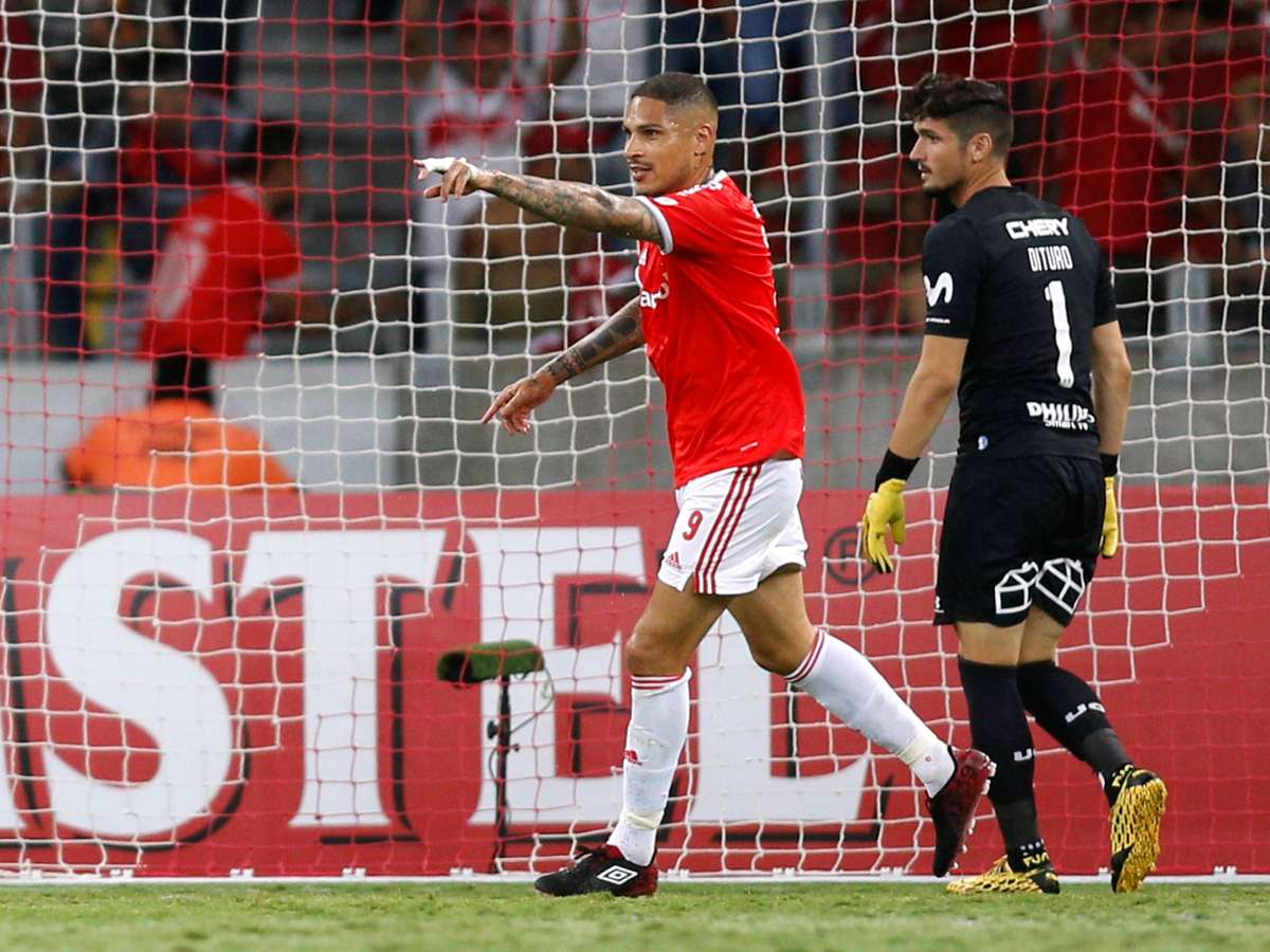 Em cobrança de falta de média distância, o peruano mirou no lado esquerdo, mas a bola desviou na cabeça de um dos jogadores que formava a barreira, mudou direção e matou o goleiro. 1 a 0 Inter.