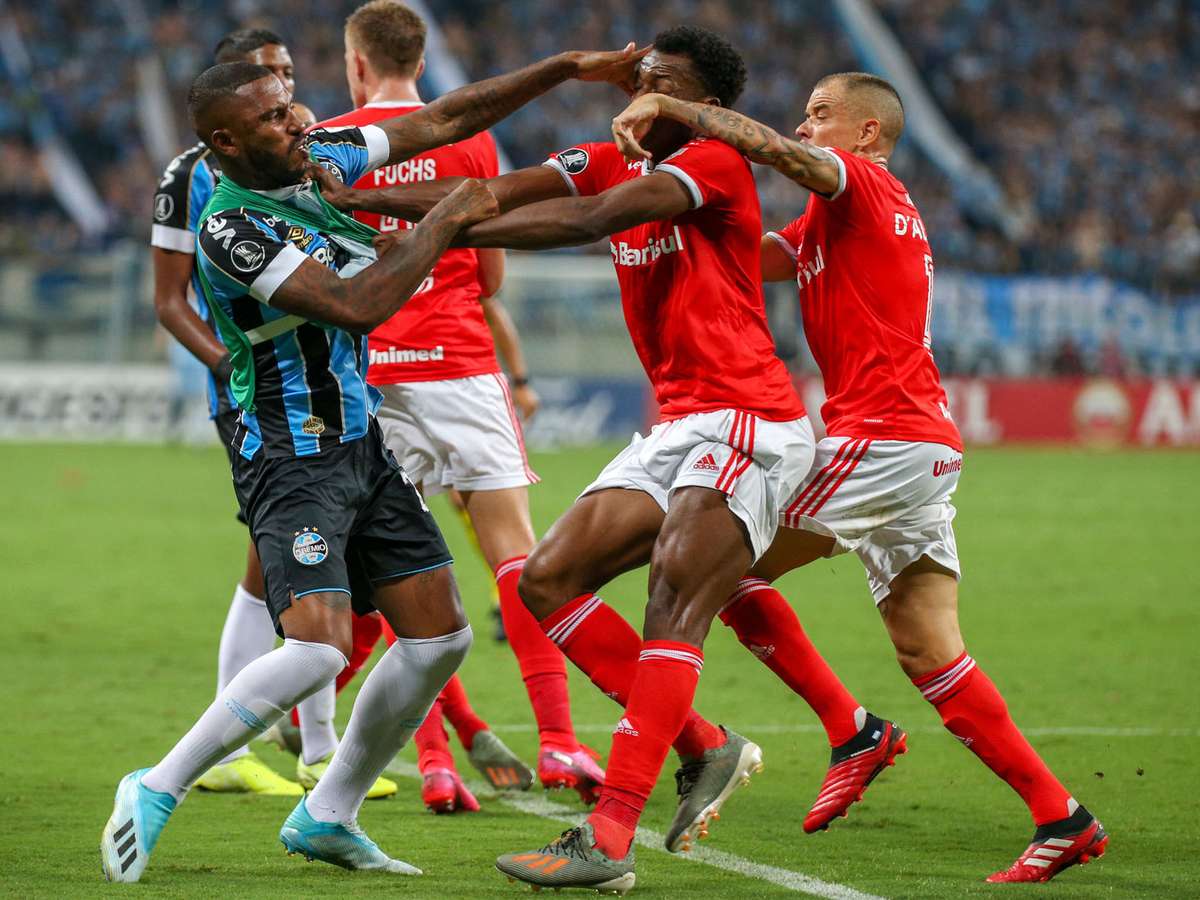 Rivalidade sem limites tende a provocar distúrbios e a regra valeu para o primeiro Grenal da história da Libertadores, realizado nessa quinta (12), na Arena do Grêmio, em Porto Alegre. O placar de 0 a 0 foi um pouco melhor para o Internacional, que se manteve na liderança do Grupo E, com o mesmo número de pontos do Tricolor, mas com vantagem no saldo de gols. No entanto, o futebol deu lugar a muita confusão em campo, com brigas e oito expulsões.