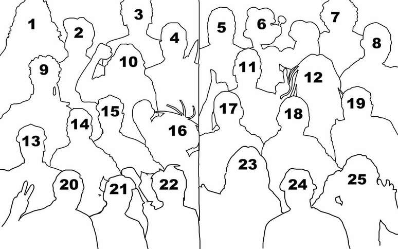 Para dar chance de brincadeira entre os torcedores, além de postar a ilustração das celebridades, Veja a arte misteriosa apenas os contornos com números, para que as pessoas tentem reconhecer cada figura da ilustração.
