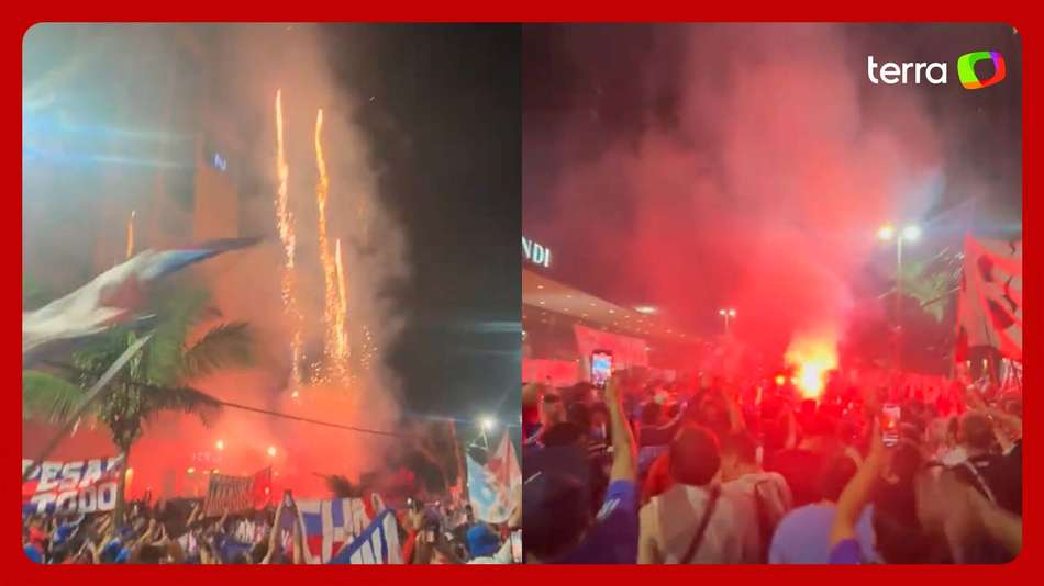 Torcedores da Universidad de Chile fazem foguetório antes de jogo contra o Botafogo