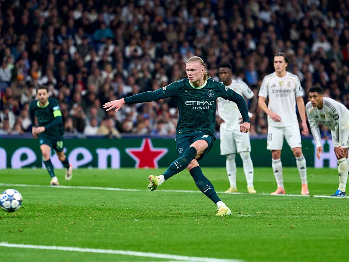A virada veio pouco depois: aos 39 minutos, após cruzamento de O'Reilly, Rudiger puxou Haaland dentro da área e, após revisão no VAR, o árbitro assinalou a penalidade máxima. O próprio norueguês foi para a batida e não perdoou.